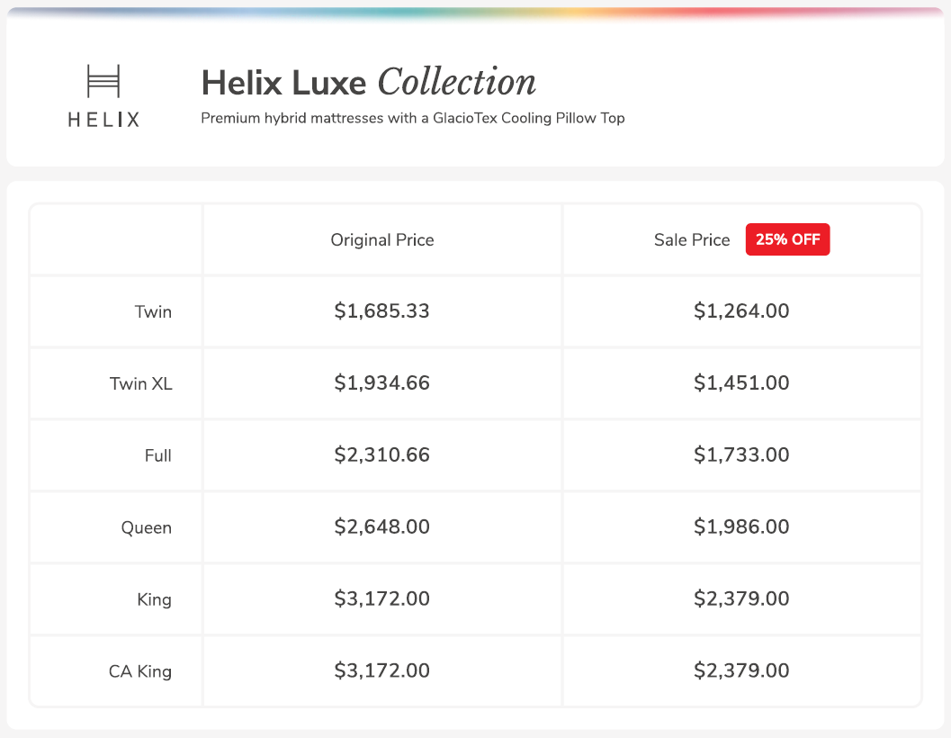 The Helix Midnight Luxe is our most popular, award winning premium mattress designed with a medium-feel, specifically tailored for side sleepers, those who toss and turn at night, and is great for couples.