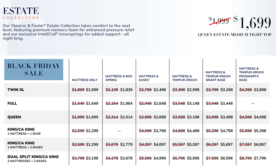 Our Stearns & Foster Estate Collection takes comfort to the next level, featuring our exclusive Intellicoil innerspring for added support-all night long.
